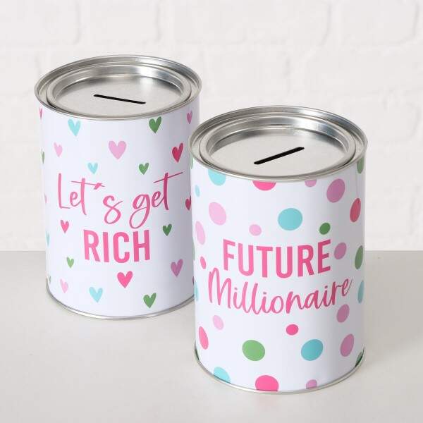 Spardose Millionaire, 2 sort., Rund, H 14 cm, D 10 cm, Eisen