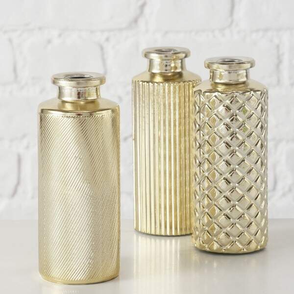 Vase Buntia, 3 sort., H 13 cm, Steingut, Glanz