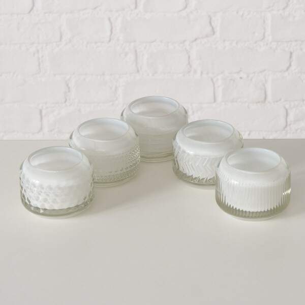 Teelichthalter Vadina, 5 sort., Rund, H 6 cm, B 8 cm, Glas lackiert weiss
