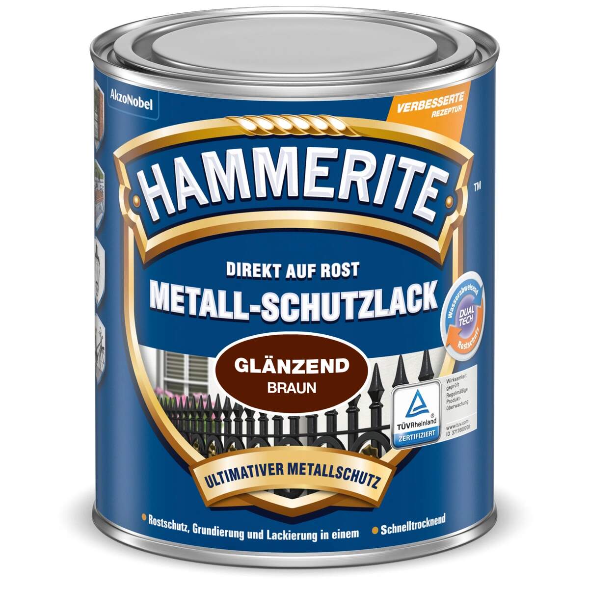 Hammerite Metallschutzlack Hammerschl. gl. schwarz 0,25 l