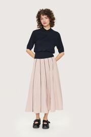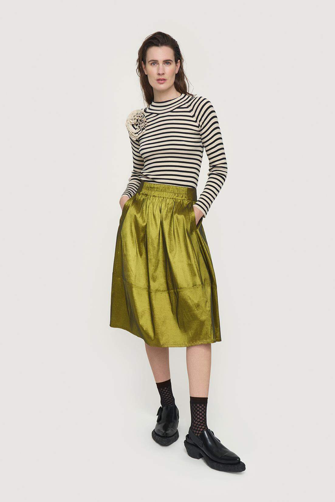 Internationale Modetrends mit klarer Linie und ebenso verspieltem Geschmack bietet das skandinavische Trendlabel Bitte Kai Rand. Einzigartige Stile und Selbstsicherheit in jedem Detail der anspruchsvollen Damenmode zeichnen die vielseitigen Kollektionen der Marke aus. Inspiriert von internationalen Trends, aber auch durch kreative Ideen und innovative Konzepte geprägt, stellt sich die Mode von Bitte Kai Rand äußerst selbstständig und modern dar. Insgesamt sechs Jahreskollektionen bieten Ihnen für jeden Anlass, Stil und Geschmack, jede Jahreszeit und jeden Anspruch exklusive und stets unverwechselbare Damenmode. Bitte Kai Rand präsentiert charmante Damen Oberteile, die durch zarte Linien, feminine Silhouetten und edle Materialien überzeugen. Moderne Kombinationen aus Jersey und Mesh bei eleganten Damenshirts, aber auch Baumwollshirts mit plakativem Print von Bitte Kai Rand umfasst das Sortiment. Trendig und immer individuell kombinierbare Basics wechseln sich mit stilsicher gestalteten Damen Jersey Shirts mit langem Arm ab. Fein harmonisierende Farbnuancen und Nude Styles, aber auch dunkle Töne, ein sattes Rot oder ein gedecktes Khaki finden sich in der breiten Modeauswahl von Bitte Kai Rand. Neben Baumwolle und Jersey stehen Strickwaren in feinster Beschaffenheit für Sie bereit. Bitte Kai Rand bietet Strickjacken aus feinem Gewebe in trendiger Färbung und lange, offene Damen Cardigans mit hohem Wohlfühlfaktor. Geschmackvolle Details, wie offene Taschen oder gerippte Bündchen, ein zartes Strickmuster oder ein gewebtes Muster, schaffen trendige Vielseitigkeit. Hemden und Blusen mit ansprechend authentischer Linie begeistern in der Freizeit und auch im Berufsalltag. Baumwolle und leichte Viskose schaffen wohligen Komfort bei geschmackvollen Damen Hemdblusen mit Knopfleiste oder zarten Blusenshirts zum Hineinschlüpfen von Bitte Kai Rand. Das Outfit stilsicher, schick und modern veredeln lässt Sie die modische Auswahl hochwertiger Hosen und Röcke: Sommerlich schöne, im Batik Style gefärbte oder schwingend ausgestellte Maxiröcke von Bitte Kai Rand begeistern mit entspanntem Charme. Auch schlanke Bleistiftröcke aus feiner Stretchfaser oder leichte Leinenröcke in cremig zarter Färbung sind im Sortiment zu finden. Bitte Kai Rand interpretiert trendige Styles stets individuell neu und schafft es mit einer modischen Auswahl hochwertiger Damenmode kreative Raffinesse in jede Garderobe einziehen zu lassen. Von Hosen mit schmalem Bein oder weiten Tencel Hosen mit breitem Gummibund bis hin zu karierten Jerseyhosen mit legerem Schnitt und stretchigen Caprihosen für den Sommer ist auch das Hosen-Sortiment von Bitte Kai Rand kreativ vielfältig aufgestellt. Sommerliche Kleider mit buntem Print oder schlichter Färbung sind in den modernen Kollektionen von Bitte Kai Rand ebenso trendstark vertreten, wie winterlich dick wattierte Mäntel mit höchster Qualität. Nachhaltig produzierte Materialien und eine Fertigung mit höchstem Qualitätsanspruch ist sowohl bei Mänteln mit Stehkragen oder einer kreativen Stepp Optik, als auch bei leichten Shirts und Tops für das ansprechende Gesamtbild verantwortlich. Kreativer Ideenreichtum gepaart mit einem umweltbewussten Fertigungsansatz, femininem Charme und edlen Silhouetten zeichnet das vielseitige Damenmode Angebot von Bitte Kai Rand aus.