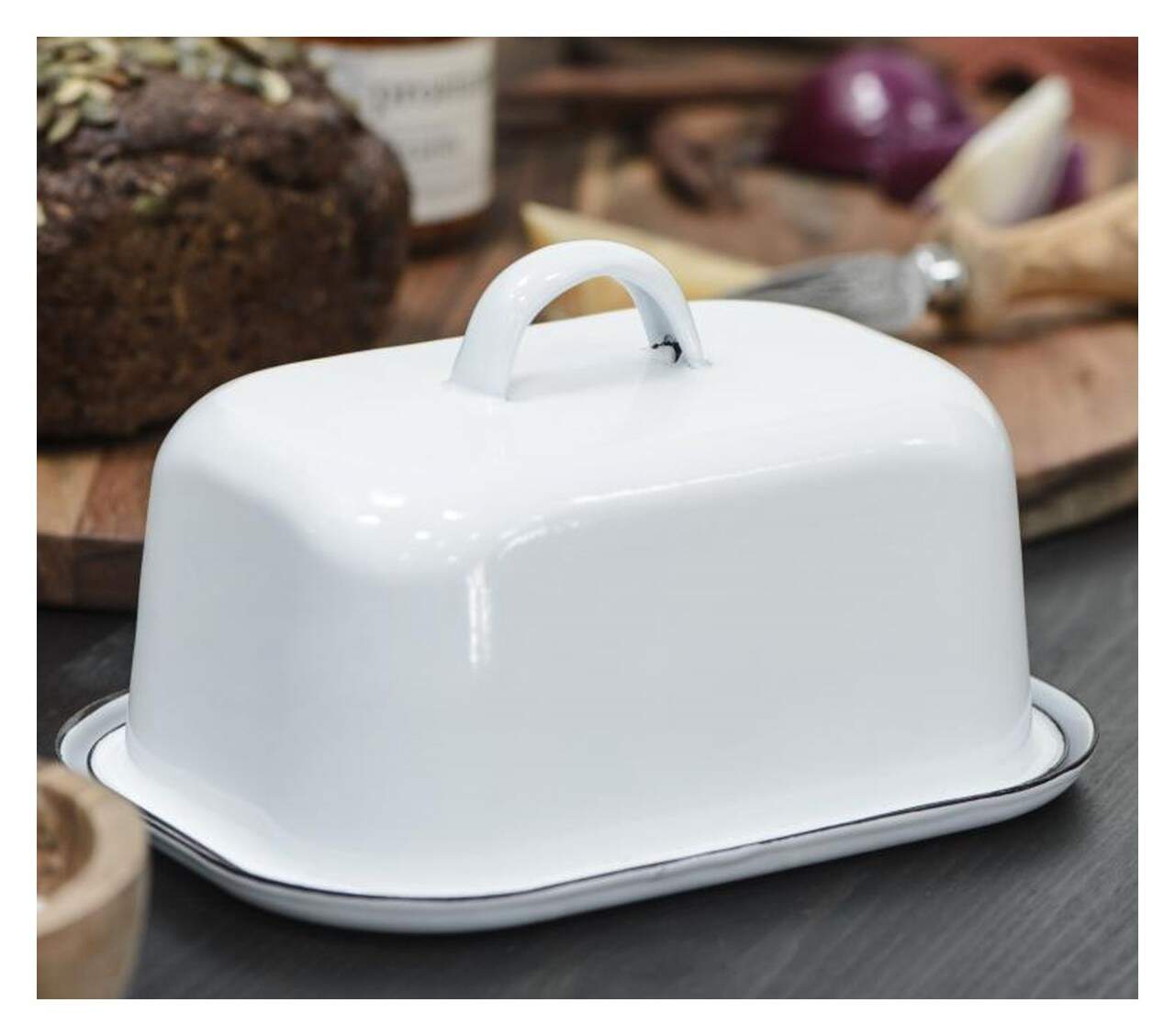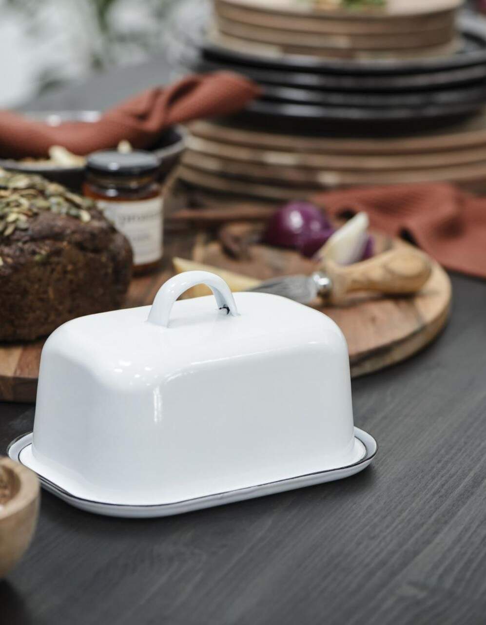 Ib Laursen - Butterdose Butterglocke Butterschale Emaille Weiß 0411-11