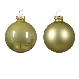 Christbaumkugeln Pistazie Glanz & Matt - 20 Stück Glas 6 cm Durchmesser - 20 Stk. a 6 cm