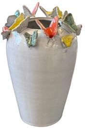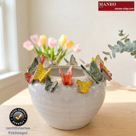 Frühlingspoesie pur - Keramikvase/Übertopf mit farbenfrohen Schmetterlingen als 3D - Dekor, Handarbeit