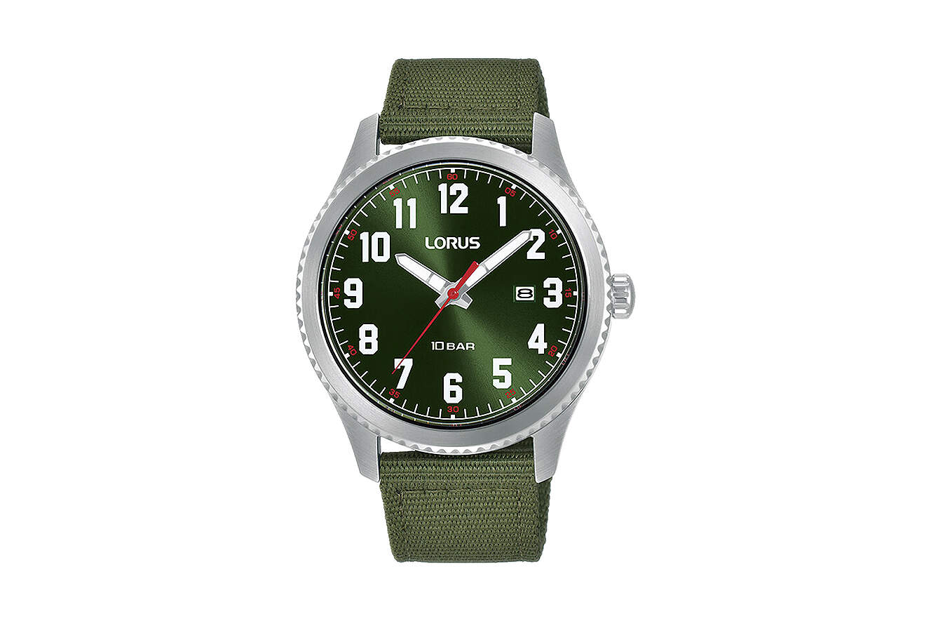 Armbanduhr Lorus RH997RX9 grünes Zifferblatt und military grünes Textilarmband