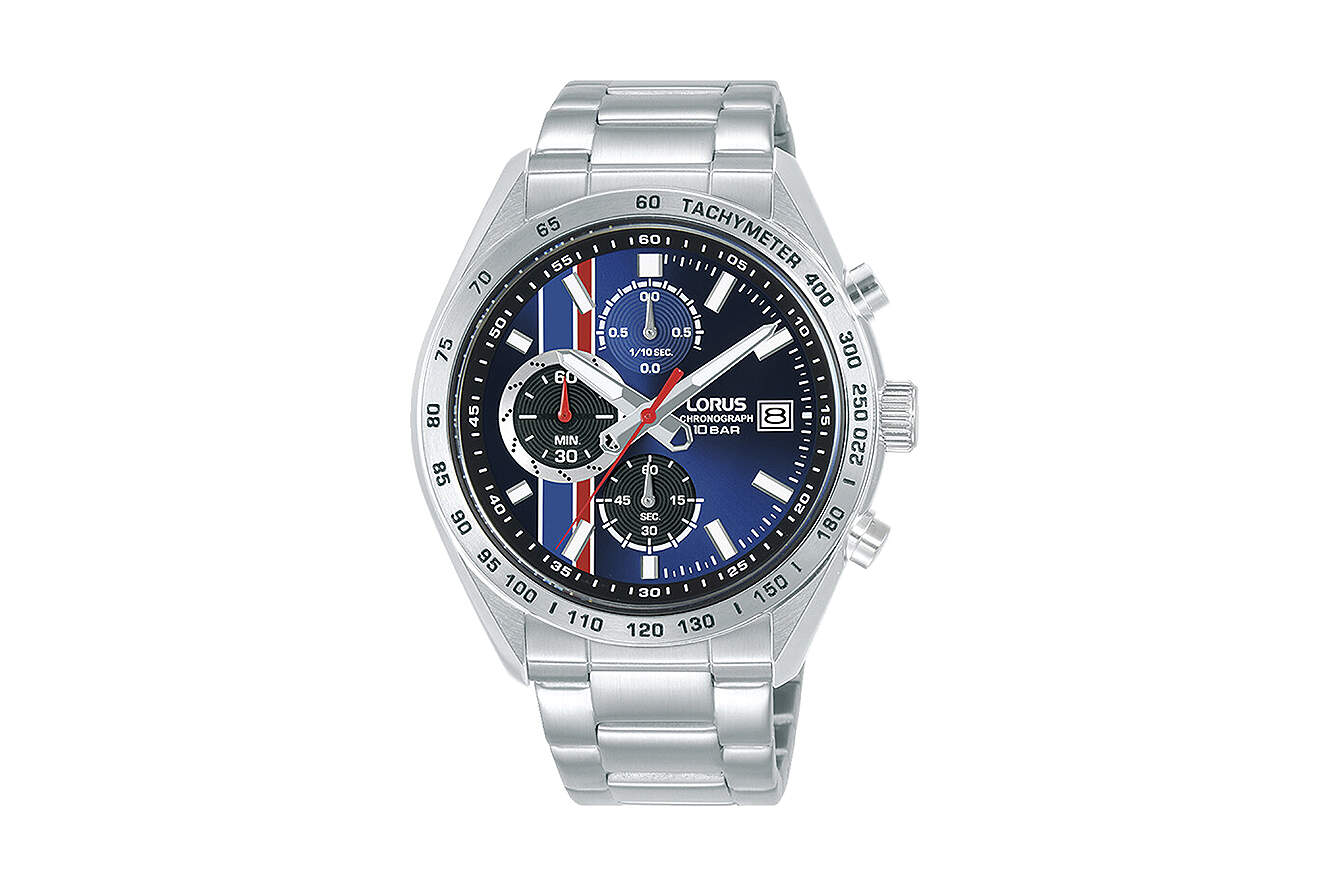 Armbanduhr Chronograph Lorus RM393JX9 mit blauen Zifferblatt und Edelstahlgehäuse