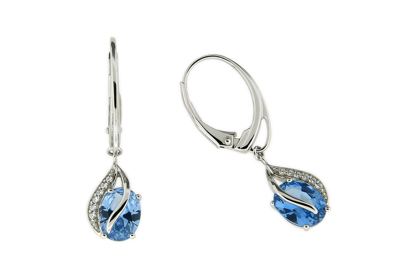 Ohrpendel Ohrring in Silber 925 rhodiniert mit synthetischen blauen Spinell und Zirkonia