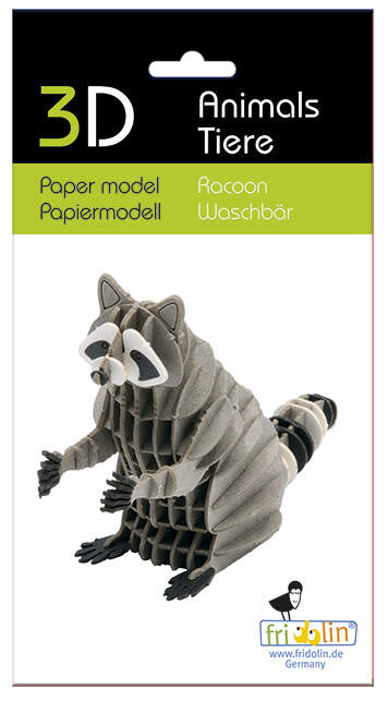 Papiermodell 3D Waschbär, Spezialkarton, gelasert