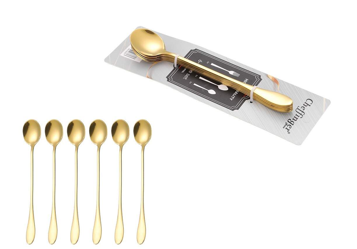 6er Set Latte Macchiato Cocktaillöffel Longdrinklöffel Löffel L 20cm CF1006 Gold