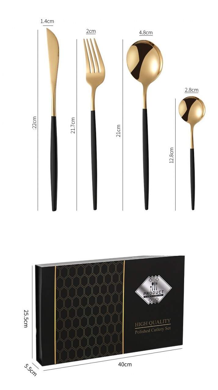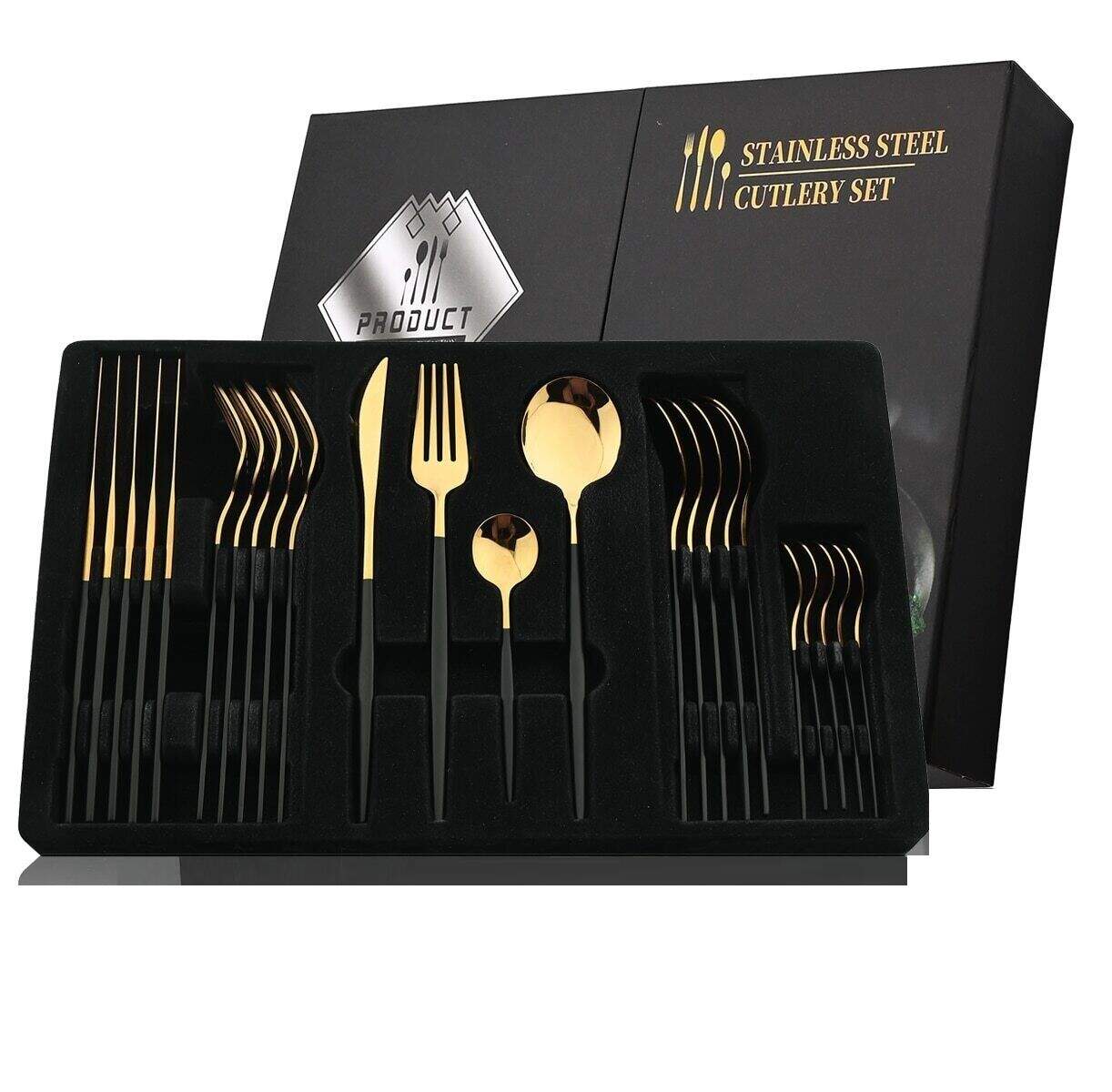 Premium Besteck-Set Schwarz/Gold 6 Personen 24-tlg Edelstahl Essbesteck CF-22128