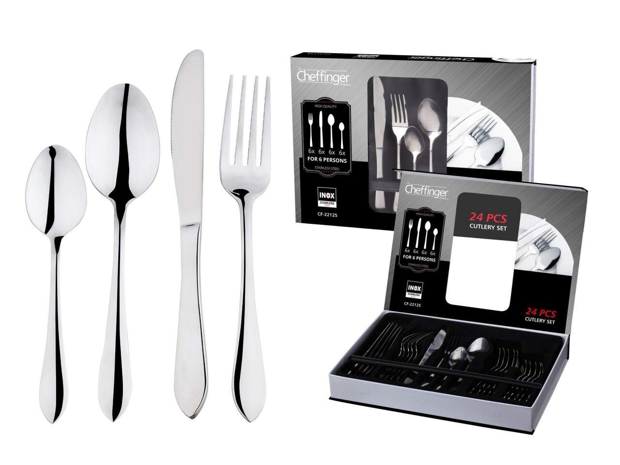 Essbesteck Besteck-Set für 6 Personen Edelstahl 24-tlg Cheffinger CF-22125