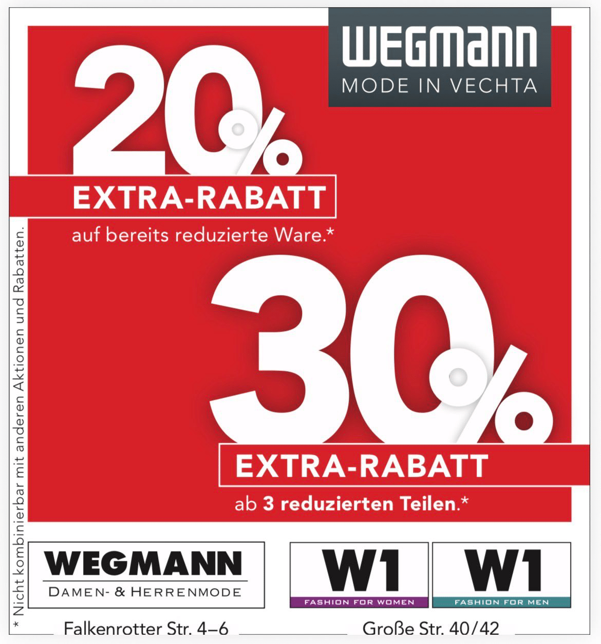 Wegmann Damen und Herrenmoden, W1 Women & W1 Men Spare jetzt auf reduzierte Ware: 20% R...