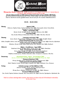 In der anhängenden Liste finden Sie einen Auszug unseres vielfältigen Angebots: Übersicht aller Catering-Gerichte