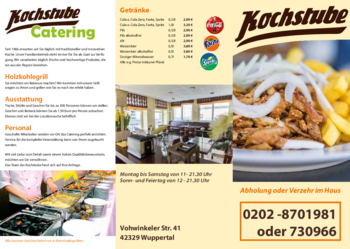 Kochstube steht für Leidenschaft, Qualität und Service. Besuchen Sie uns und lassen Sie sich von unserer Gastfreundschaft und unserem hervorragenden Angebot überzeugen. Egal, ob Sie einen Tisch in unserem gemütlichen Restaurant reservieren oder unseren Catering-Service in Anspruch nehmen möchten, wir freuen uns, Ihnen ein außergewöhnliches kulinarisches Erlebnis bieten zu dürfen. Wir laden Sie herzlich ein, die Kochstube auszuprobieren und Teil unserer großen kulinarischen Familie zu werden. Ihr Genuss ist unser Auftrag, und wir lieben es, diesen Auftrag mit Perfektion auszuführen.